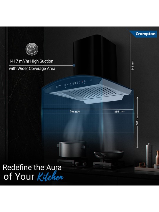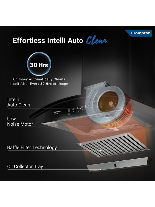 Control Type - Crompton IntelliSense chimney features both touch sensor and motion sensor controls. It means you can effortlessly change the suction speed of your chimney with just a wave of your hand or control other features like LED lights and auto-clean with a soft touch.