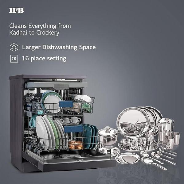 Free Standing Dishwasher: Affordable with Best in Class Wash Quality, Saves Water and Easy to Use 16 Place Settings: Suitable for Bachelors & Couples with adjustable cutlery basket A++ Rating: Helps save energy and keep the planet green IFB Offers Best 2 Years Comprehensive Warranty for the Machine and 8 Years of Spare Parts Support Special Features: 70°C Hot water wash for tough stains, Hygienic Steam Drying: Get Completely Dried & germ free dishes, 360° unique spray arm for hard to reach spots