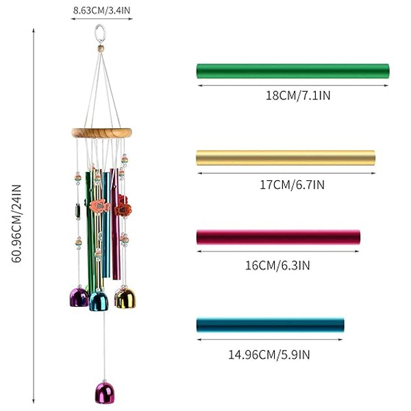 4 Pipe and 5 Bells Wind Chimes for Home